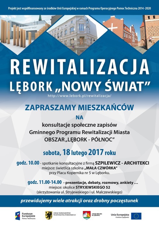 W sobotę, 18 lutego 2017 odbędą się dwa spotkania z mieszkańcami, podczas których zaprezentowane zostaną zapisy Gminnego Programu Rewitalizacji Miasta Lęborka dla obszaru Lębork - Północ.