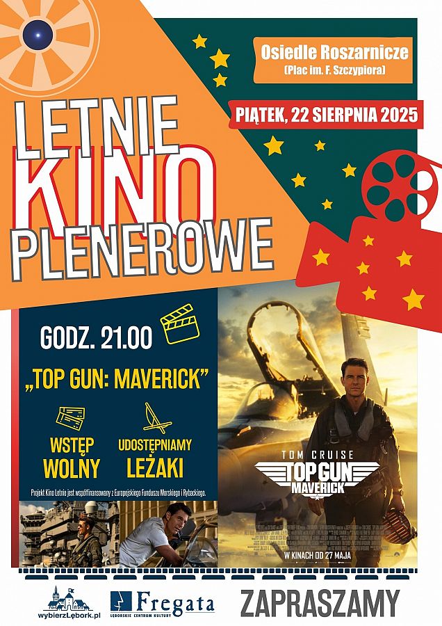 Lęborskie Centrum Kultury "Fregata" zaprasza na wyjątkowy wieczór filmowy pod gołym niebem! Już w piątek, 22 sierpnia 2025 r. spotykamy się na placu im. Franciszka Szczypiora na Osiedlu Roszarniczym, gdzie o godzinie 21:00 rozpocznie się pokaz jednego z najbardziej widowiskowych filmów ostatnich lat – „Top Gun: Maverick”.