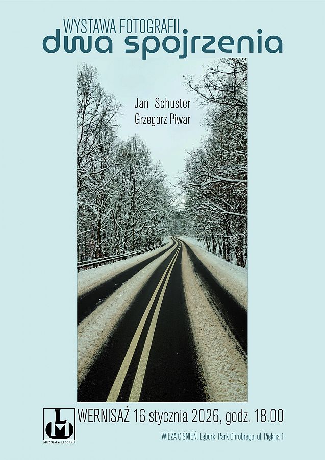 Muzeum w Lęborku zaprasza na wystawę fotografii pt. „Dwa spojrzenia”, na której swoje prace zaprezentują Grzegorz Piwar i Jan Schuster. Wystawa odbędzie się 16 stycznia 2026 r., otwarcie o godz. 18.00 w Wieży Ciśnień (Park Chrobrego, ul. Piękna 1). Wstęp wolny.