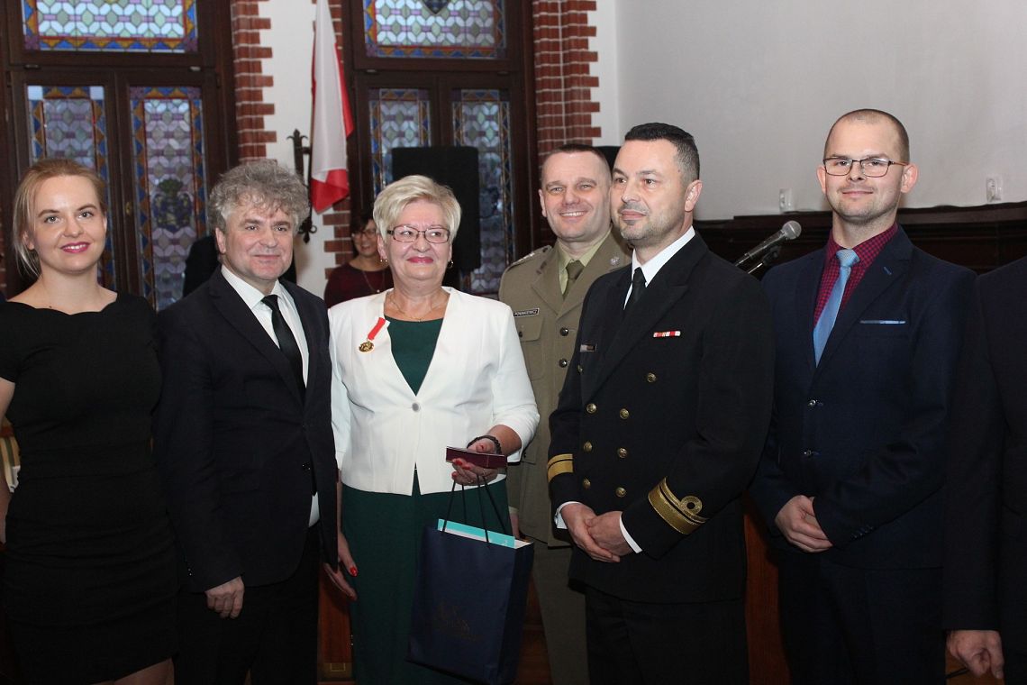 Medal wręczyli przedstawiciele wojskowej Komendy Uzupełnień w Słupsku kmdr ppor. Mirosław Olszewski, kpt. Sylwester Poninkiewicz oraz Burmistrz Witold Namyślak. Na uroczystości obecna była również rodzina Pani Marii Zawadzkiej.