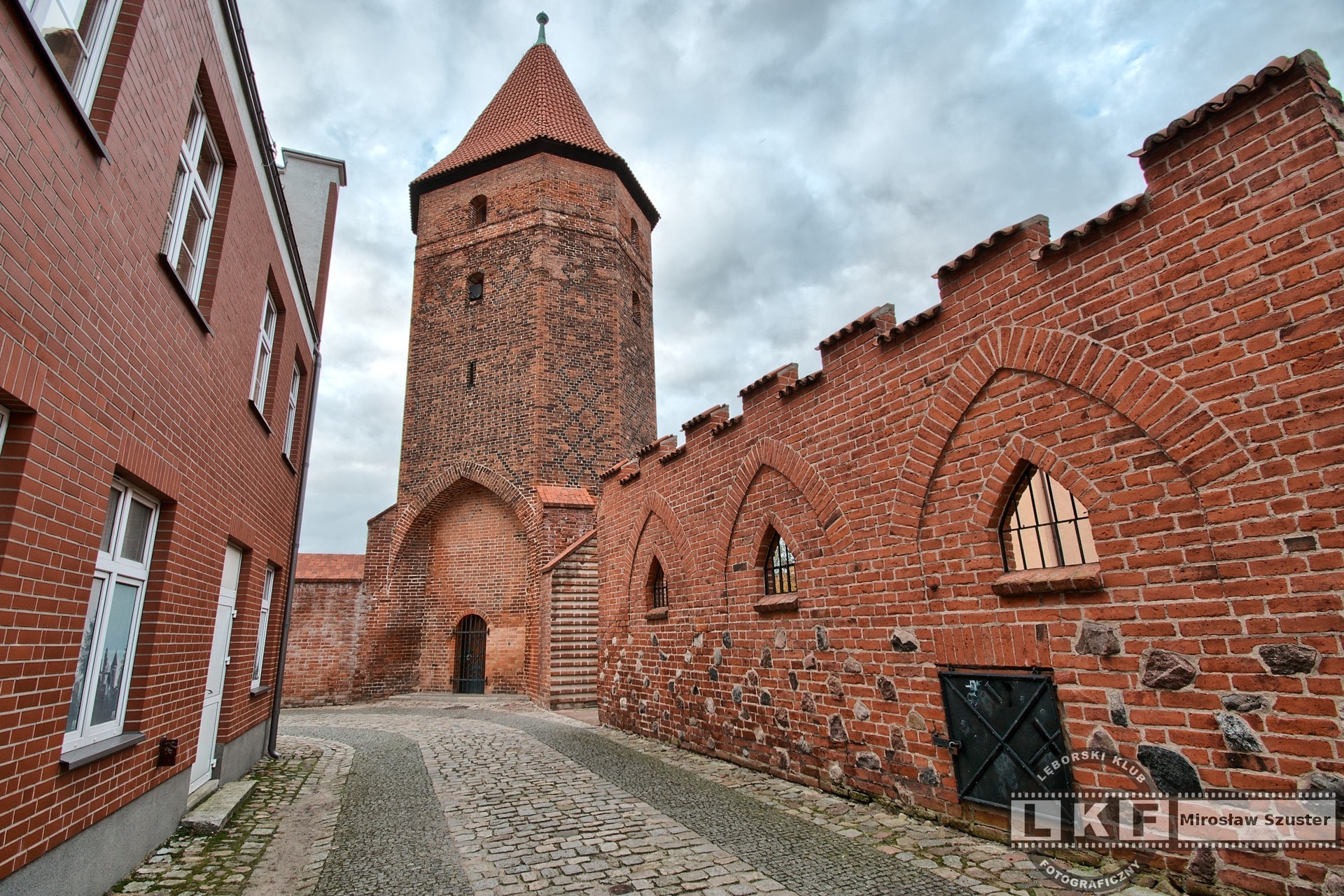 Niezwykle cennym, bo zachowanym w pierwotnym stylu zabytkiem miasta jest baszta narożna zwana Basztą Bluszczową, będącą integralną częścią miejskich murów obronnych. Zbudowana została w czasie wznoszenia miejskich fortyfikacji, czyli około 1363 roku. Jej nazwa wywodzi się stąd, że porastał ją gęsty bluszcz. Zimą 1855 roku bluszcz wskutek ostrych mrozów wymarzł. Odtąd pozostała tylko nazwa. Konstrukcja tej baszty odbiega od pozostałych baszt wchodzących w skład średniowiecznych miejskich obwarowań. U swej podstawy baszta jest czworoboczna. Od drugiej kondygnacji jej kształt zmienia się na ośmioboczny. Przykryta jest spiczastym dachem krytym dachówką. Dach zwieńczony jest czopem z miedzianą kulą. Elewację stanowi charakterystyczny dla lęborskich fortyfikacji wzór cegieł zwanych zendrówkami, których ciemny kolor wyróżnia się, tworząc motywy graficzne.