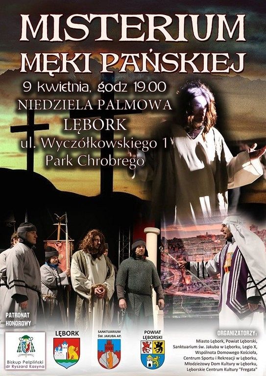 Misterium Męki Pańskiej odbędzie się w Niedzielę Palmową 9 kwietnia 2017 o godz. 19.00, ul Wyczółkowskiego 1, Park Chrobrego.