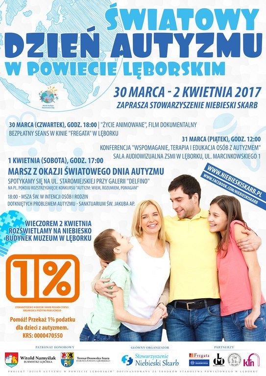 Niebieski korowód wyruszy o godz. 17 spod Galerii DELFINO przy ul. Staromiejskiej i przejdzie na Plac Pokoju. Tam po części oficjalnej i artystycznej rozstrzygnięty zostanie konkurs plastyczny na plakat dla uczniów gimnazjów i szkół ponadgimnazjalnych „Autyzm: wiem, rozumiem, pomagam”.